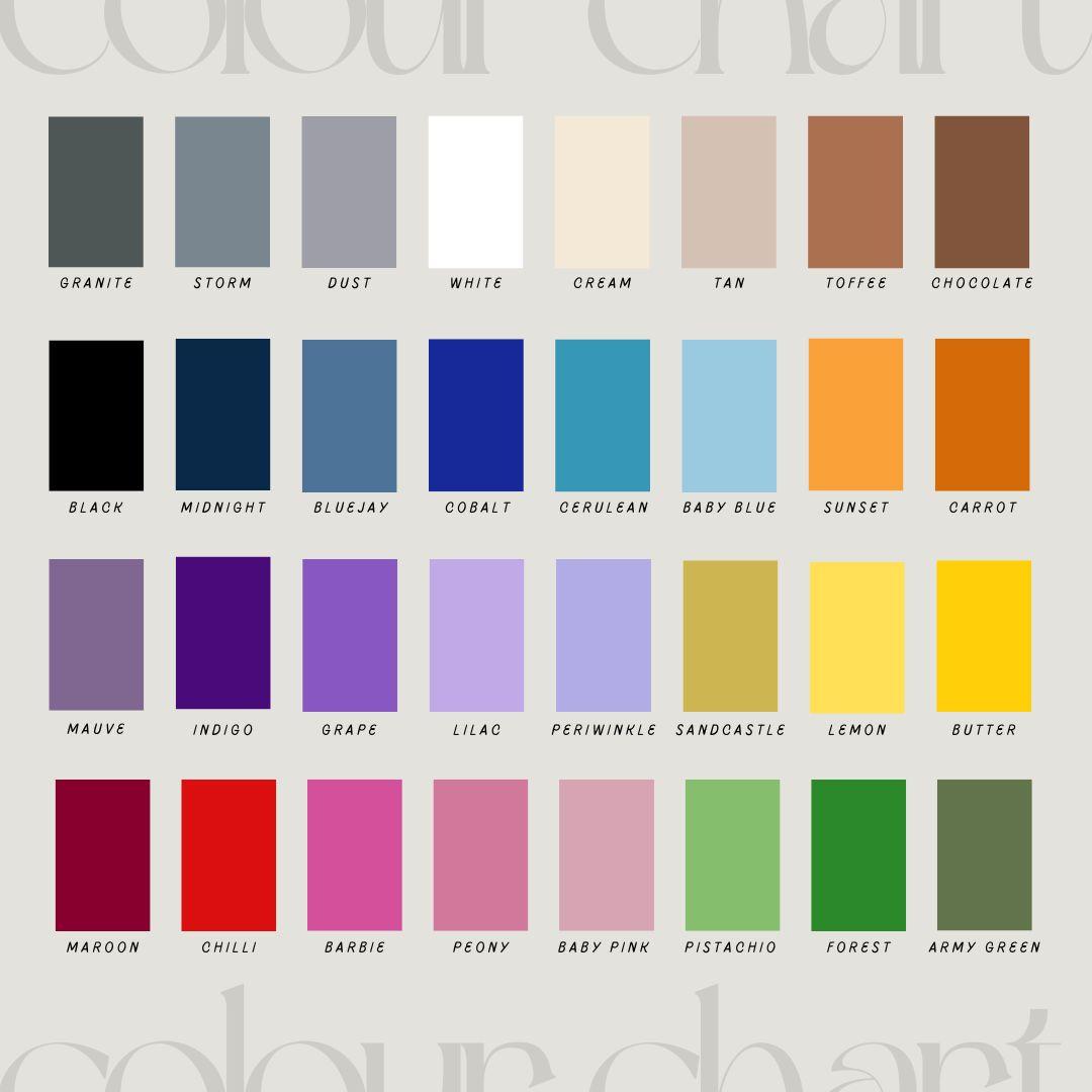 for snuffle items, refer to the following colour chart for available colours